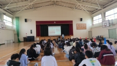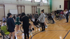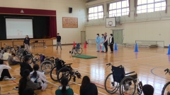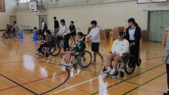 今日の1限目に、6年生の地域連携授業「ようこそ先輩」がありました。よっかいち諧朋苑の方に来ていただき、日々の仕事について説明していただいたり、なぜこの職業に就いたのか・やりがいは何かなどについて話していただいたり、車いすの押し方や注意することを教えていただいたりしました。その後、実際に車いすを押す経験をさせてもらいました。最後には、子どもたちから出た質問に丁寧に答えていただきました。