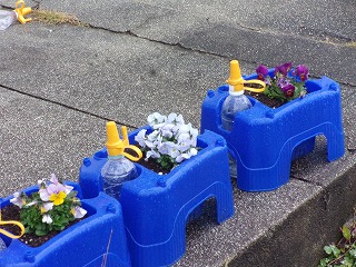今、1年生がビオラを育てていました。1年生の先生に聞くと、「ビオラの隣にチューリップの球根を植えた」と教えていただきました。早く育つといいですね。咲いたチューリップの色が楽しみです。これからも1年生のみんなには水やりなどの世話を頑張ってほしいです。