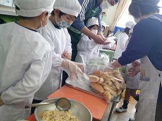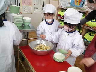 1年生の給食当番の様子