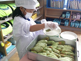 5月10日(火)1年生が上手にもりつけやくばりをしていました。