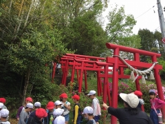 2年生では,1・2学期の生活科の学習で,校区の探検を行います。第一回目は,北山地区に行きました。公民館やお店や駐在所を外から見学し,最後には,長尾稲荷神社に行きました。校区を知ることは大切ですし,3年生や4年生の社会科の学習にもつながります。