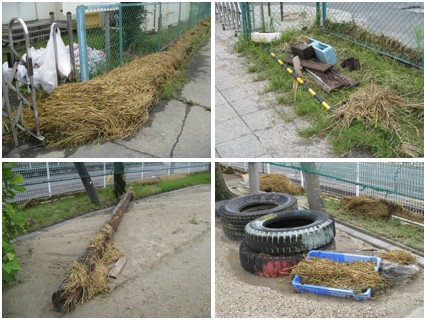 昨夜から今日未明までの大雨で、通学路にも被害が出、登校を遅らせました。安全確認に時間がかかってしまい、保護者の皆様には大変ご迷惑をおかけしました。学校も、運動場やフェンスの周りにたくさんのごみがたまり、昨夜の雨のすごさを物語っています。今日から高学年の子達にも手伝ってもらい、少しずつ片づけていきます。