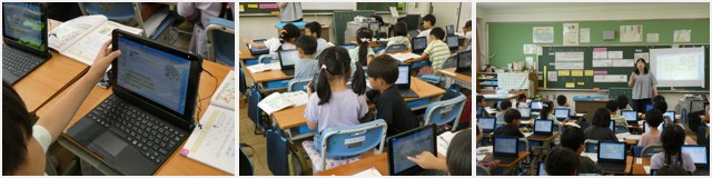 1年生は、算数で引き算の学習をしています。引き算の問題と言えば、「のこりはいくつ?」「ちがいかいくつ?」ですが、この最後には、絵を見て、7-3=4になるお話問題をつくる学習があります。子どもたちは、タブレットを使って、お話を作る練習をしたり、お話づくりのヒントをもらったりして、問題作りに取り組んでいました。