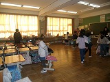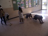 そうじの時間には、1年生の教室を6年生がいっしょに掃除します。