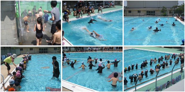 今日は待ちに待ったプール開きです。梅雨入りはしたものの、今日は良いお天気で絶好のプール日和。子ども達は1年ぶりの(或いは1年生にとっては小学校初の!)プールに歓声を上げていました。