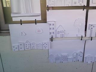15日(火)に、図工の時間に「自分らしい町」を作りました。いろんな形を立体的に切って作りました。みんな、自分らしい町を作っていました。