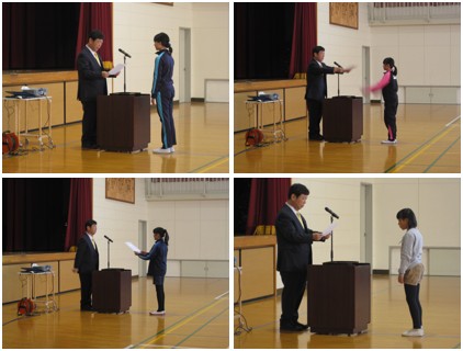 校長からの話に続き、夏休みに取り組んだ自由研究や新聞スクラップ、読書感想文などの表彰を行いました。