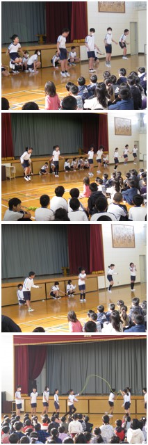 6年生からは縄跳びの技を披露してもらいました。さすが最高学年。縄跳びの技も紹介のナレーションも上手でした。