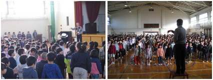 2学期最後の今日、全学年が体育館に入り終業式と児童集会を行いました。