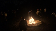 キャンプファイヤーが始まりました。もりあがっています。