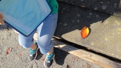今日は、1年生が校区探検で桜公園に行きました。天気がよく、子どもたちも楽しそうに歩いて現地をめざしました。桜公園では、遊具を見つけたり、きれいな落ち葉を拾ったり、それぞれが気づいたことをメモしていました。