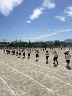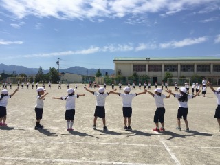 初めて運動場でダンスの練習をしました。1年生の子どもたちは、「あいうえおんがく」のダンスが大好きです。速いリズムや色んな隊形並びも、楽しんでどんどん覚えていきます。素敵なダンスをお家の方に披露するのも、もうすぐです。どうぞお楽しみにしていてください。