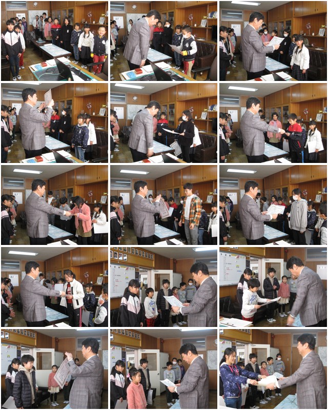 長かった2学期が今日で終わりました。インフルエンザ感染拡大防止のため、終業式は体育館では行わず、放送で行いました。そのため、予定していた表彰式も放送で紹介し、校長室で賞状を渡しました。