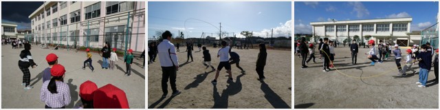今週は、なわとび週間です。20分休みに全校が運動場に出て、各クラスで大縄跳びに挑戦しています。1,2年生には、6,5年生の子たちが縄を回してくれています。寒さの負けず、頑張っています。