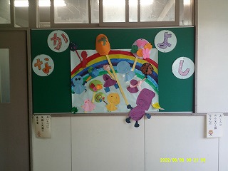 てるてるぼうずがはってあり、みなさんは、自分らしい絵を描けていました。