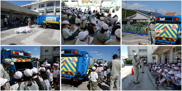 5・6限目、4年生は北部清掃事業所の方に来ていただき、ごみ収集車についての出前講座を行いました。はじめに、四日市のごみについてやごみ収集についてお話していただきました。そして、ごみ収集車を近くでじっくり見せていただいたり、ごみ収集車にごみを入れる体験をさせていただいたり、入れたごみがどのように車から出す様子を見せていただいたりしました。最後に、質問の時間となりましたが、子どもたちはとても熱心にたくさんの子が質問をしていました。今月21日には、四日市クリーンセンターに見学に行き、さらに、詳しく学習する予定です。