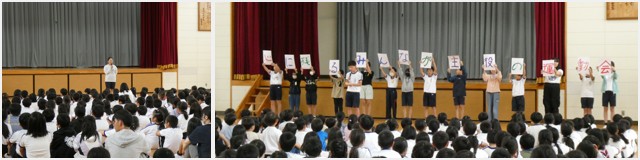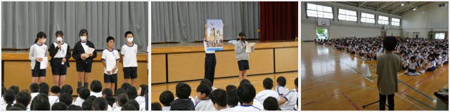 後半は、委員会の発表でした。委員会の仕事の紹介やみんなへのお願いでした。みんなが気持ちよく学校生活を送るうえで、当たり前のことだったり、大切なことばかりでした。みんなで頑張りましょう。最後は、ユニセフ募金への協力のお願いでした。全校で行う児童集会が次回も楽しみになりました。