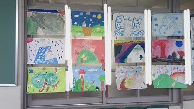 4年生が図工で「へんてこ山の物語」を描きました。