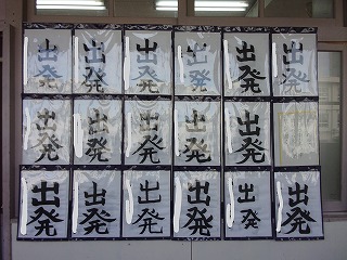 5年生の教室の前に、新年試筆で書いた習字が貼ってあります。このように飾ってあると、みんなの頑張って書いた字がとても良く分かっていいなと思いました。