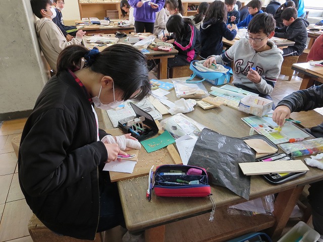 図工で卒業制作として、リモコンラックをつくっています。