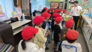 郵便局では、どうやって手紙を出すのか、1日にどれくらいの手紙が来るのかを教えてもらいました。それだけでなく、ほかにも保険の仕事や、販売の仕事もあることも知り、とても驚いていました。
