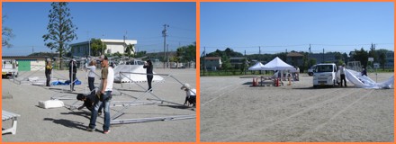 今日の放課後、運動会当日に子ども達が観覧する席に張るテントを建てていただきました。これは例年、下野地区の各自治会からお借りしているテントで、今年も各町自治会のみなさん、PTA役員・地区委員のみなさんに搬入から組み立てまでお世話になりました。ありがとうございました。本番まで、いよいよ後2日です。
