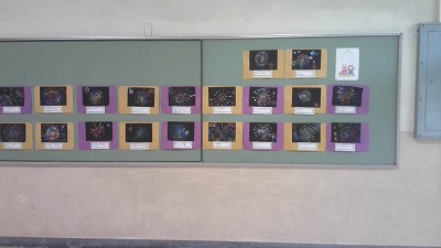色がカラフルでいろいろな形の花火があり一人ひとりの個性がでています。音が聞こえてきそうでとてもきれいですね。