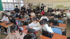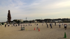 寒くなってきましたが、運動場から準備体操をする大きな声が聞こえてきました。2年生の体育の授業です。その後、5分間走に取り組んでいました。走る人と何周めか数える人に分かれ、走り出しました。「がんばれー」と応援する声が響いていました。