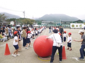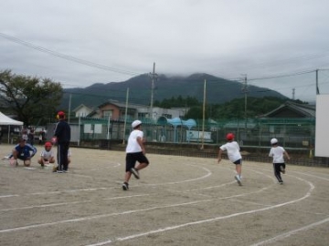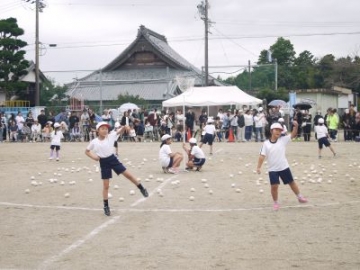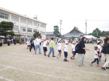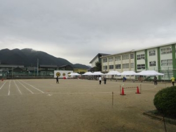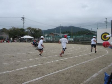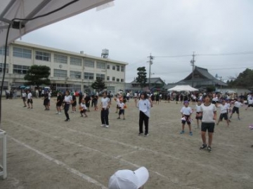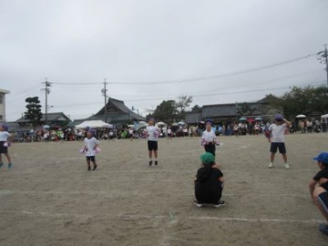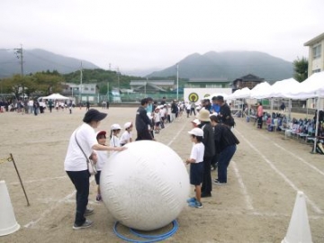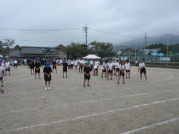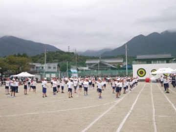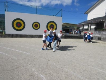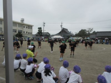 天候が不安定な中ではありましたが、今年度の運動会が終わりました。子どもたちは、朝の登校時から、運動会を楽しみにしている表情や頑張ろうという気持ちが表れていました。降雨のため、開会式をテントで行ったり、途中、中断がありましたが、変更があったにもかかわらず、臨機応変に対応することができました。徒競走は、どの子も全力で走りきるだけでなく、競走をしっかりと楽しむことができました。団体競技は何といってもチームワーク。玉入れ、デカパンリレー、全員リレー、それぞれに作戦や助け合いの姿が見られました。ふれあい種目では、多数のご参加、ありがとうございました。大人の方も入った大玉送りは、迫力がありました。最後に、全校で行った表現です。全校で一生懸命、楽しく踊る姿は、運動会のフィナーレにふさわしい子どもの姿でした。「みんなで助け合い最後まであきらめずに最高の運動会」になりました!