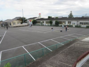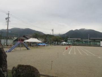 子どもたちの準備の後はPTA役員・地区委員の皆様に、遊具の固定やエリア区切りのくい打ち、駐車場のライン引きなどの準備をしていただきました。たくさんの作業箇所にもかかわらず、1時間もかからないくらいで終えていただきました。保護者の皆様のお力添えに感謝です。お忙しい中、ご協力いただき、ありがとうございました。
