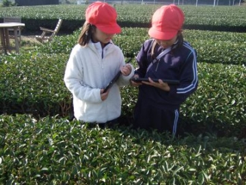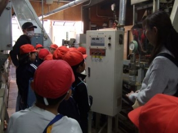 2年生が生活科の学習で、かぶせ茶カフェの方にお世話になり、茶畑や茶工場の見学、お茶の入れ方などを通して、かぶせ茶づくりについて学びました。茶畑では、芽や花、実などの観察、防霜ファンが気温5℃以下になると自動的に回り始めることなどを教えていただきました。茶工場では、刈り取った茶葉からお茶ができるまでの工程を見学させていただきました。最後に、一人ひとりが熱めのお湯とぬるめのお湯で入れたお茶の違いを味わわせていただきました。入れ終えた茶葉をポン酢しょうゆで味わうと「おいしい!」「給食に出してほしい」と話していました。お話をきき、体験したことで、よりかぶせ茶を身近に感じたことだと思います。また一つ、水沢ならではの知識が膨らみました!