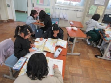 3年生が国語科の時間に、おすすめの本の紹介を作っていました。図書室に行き、自分が紹介したい本を選ぶと、イラストを交えながら、題名や本の内容、読んでほしいところなどをまとめていきました。たくさんページ数のある本を短い言葉でまとめたり、伝えたいところの挿絵を選んだりと、自分で選択してまとめる力は、とても大切です。3年生の子どもたちは、社会見学のまとめたことをプレゼンするなど、しっかりとまとめる力が育ってきています。