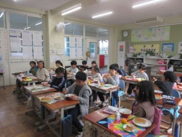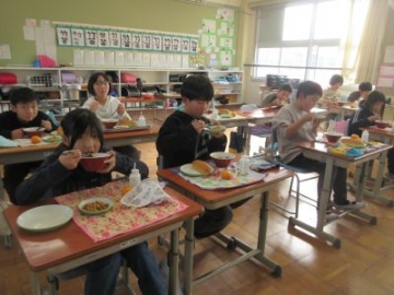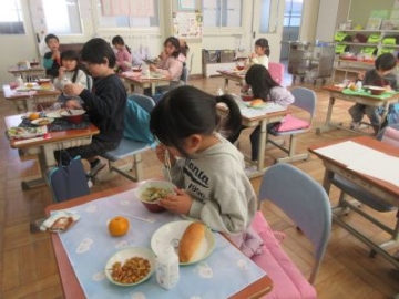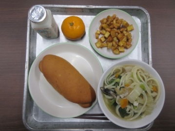 昨日に引き続き、今日も四日市ふるさと給食でした。献立は、小型玄米パン、はっこう乳、地物たっぷりしのだうどん、さつまビーンズ、みかんです。地元四日市の食材を楽しみながら、おいしくいただきました。「おかわりしたい!」「うどんのお出汁がおいしい」と感想を聞かせてもらいました。月曜日で2学期の給食が最終となります。作っていただく調理員の方々に感謝をしながら、しっかりと食べてほしいですね。