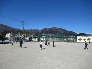 日に日に暖かくなってきています。今日の休み時間は多くの学年が運動場に出て外遊びをしていました。4年生と5年生がいっしょにドッジボールをしていました。123年生はおにごっこや的当て、6年生はサッカーをしていました。上着を脱いで半袖になって走り回っている子もいました。気持ちのよい休み時間でした。