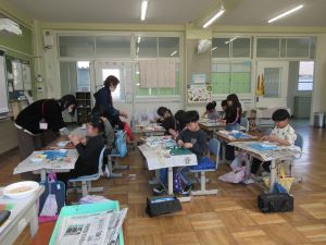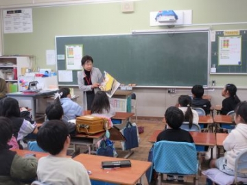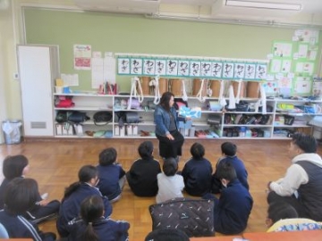 今日は、読書ボランティアさんによる読み聞かせがありました。各クラスに移動する前に、校長室におみえになったボランティアのみなさんが、今日はどんな本を読まれるのかをお話されています。読み聞かせをしていただくボランティアの方々がとても楽しそうに話す様子を見ながら、実際にクラスにいくと、子どもたちも真剣にお話の世界に入る姿がありました。読み聞かせを通して、本のおもしろさに触れるだけでなく、ボランティアさんの語りをきくことも大切な学びとなっています。
