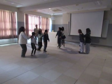 体育の時間にゴール型のゲームに取り組みました。はじめに準備運動です。ゴールに向かって3つのエリアをすり抜けなければいけません。相手の守りの隙間を見つけて一気にボールを蹴りながら進むのですが、なかなか思うようにボールコントロールができません。それでも、回数を重ねるごとにどんどん上達していく子どもたち。風もあって少し肌寒い日でしたが、汗をかきながら運動し続けることができました。