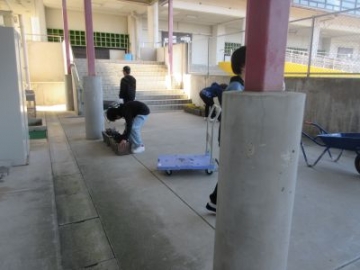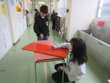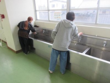 6年生が5、6限めに奉仕作業を行いました。卒業前に、6年間過ごした学校をきれいにしようと、壁や流し、配膳台の掃除をしてくれました。スポンジやシート、歯ブラシなど、掃除道具も普段は使っていないものも使いながら、進めていきました。他の学年から「きれいにしてくれて、ありがとうございます」と声をかけてもらうと、うれしそうな表情になっていました。一通り終わると、最後に、創立150周年記念事業実行委員会の皆様から寄贈いただいたパイプ椅子を全員で体育館に運ぶ作業をしてくれました。一人で何脚も運ぶ姿を見て、頼もしい6年生だと感じました。