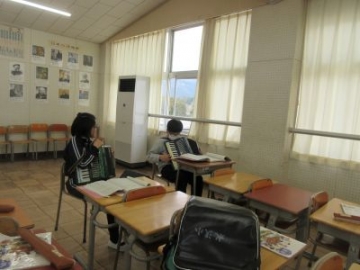 3階から、いろいろな楽器の音が聞こえてきます。5年生が、音楽の授業で、合奏の練習をしていました。音楽室に入ると、どうも自分たちで声を掛け合い、それまではそれぞれの楽器で練習していましたが、全員で合わせてみようということになったようです。それぞれの楽器の音色が重なりあって、とても上手な合奏に仕上がってきていました。担当の先生からは、「練習していくごとに、音が合っていく様子がよく伝わってきます」と、楽器の音をよく聴きながら合奏を楽しんでいる子どもたちの様子を教えていただきました。最後には、とても素敵な合奏になることでしょう。楽しみです。