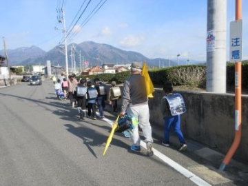 今朝の登校風景です。新一年生歩幅に合わせ、何度も後ろを振り返りながら歩く班長さんの姿がとても印象的でした。「こっちだよ」「車が来るから止まってね」と優しく教える上級生の姿に、大きな成長を感じます。1年生も、上級生の背中を見て、少しずつ学校生活に慣れていってくれることでしょう。地域の見守りの方々や保護者の皆様の付き添いのもと、無事に登校することができました。子どもたちの安全のため、早朝より各所で見守ってくださり、本当にありがとうございます。