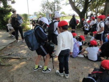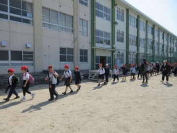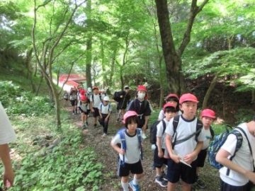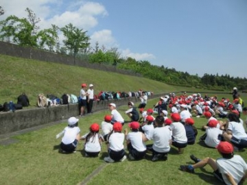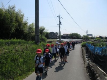 すいざわ学の時間に、1、2年生が本町公会所まで探検に出かけました。朝のうちに振っていた小雨も上がり、さあ出発です。2年生が先頭になり、歩き方も1年生のお手本です。歩くスピードも考えながら、上手に歩くことができました。公会所では、遊具で遊んだり鬼遊びをしたりと、思い思いに遊びました。先生の笛の合図が3回鳴ったら、それぞれの学年できちんと整列。楽しく遊ぶことももちろん、みんなで安全に学習するためのルールも学びました。まずは、学校の周辺から探検が始まりました。これから水沢にある素敵な場所をたくさん見つけていきましょう!