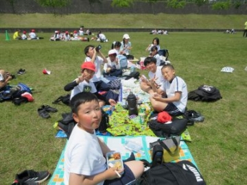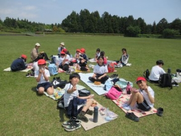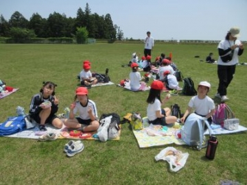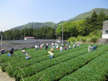 少し風は強かったですが、青空の下、6年生が学校茶園で茶摘みに取り組みました。まずは、JAの職員の方々に茶の手摘みの仕方を教えていただきました。「一芯二葉を摘み取ってください。新しく出てきた芽とその下にある2枚の葉を丁寧に摘み取ってください。」子どもたちは、茶園に入ると、教えていただいた「一芯二葉」を上手に摘み取り始めました。最初は、「これでいいのかなあ」と不安そうな表情もありましたが、それもつかの間。どんどん摘み取り、腰に付けたバケツがいっぱいになりました。私たちが口にするお茶も、たくさんの人がかかわり、たくさんの時間を費やし、お世話をしていただくことで、おいしいお茶になります。手摘みをする大変さを実感するとともに、茶業に関わる方々の工夫や苦労を学ぶことができました。