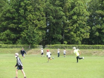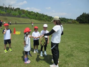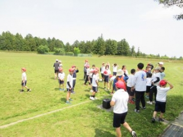 1、2年生が体育の授業で、リレーに取り組みました。運動場では、蛇ジャンケンやリングバトンを使ったリレーなど、走ることを楽しむ運動をたくさんしてきました。今日のバトンは、ドッジボールです。両手でボールを抱えると、とても走りにくそうでしたが、それでも体をうまく使いながら、コーンを回ってきます。次の走者へのパスの時には、勢い余ってボールが飛んでいってしまう場面もありましたが、最後は接戦。競走する楽しさを味わうことができました。
