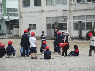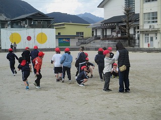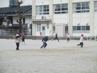 6限目の学級活動の時間に、運動場で鬼ごっこの一種である「ケイドロ」をしました。警察と泥棒に分かれて、警察が泥棒を追いかけて捕まえる鬼ごっこです。警察が一定時間数えている間に泥棒が逃げ、警察に捕まった泥棒は牢屋(サッカーゴール)に入ります。助けに来た仲間にタッチされた泥棒は、牢屋から出て再び警察から逃げることができます。泥棒全員が牢屋に入るまで続けます。運動場全体を使って、子どもたちは走り回っていました。「タッチしても泥棒になってくれない」と泣きべそをかいて、みんなから離れて過ごしている子もいましたが、ゲームの最後には、仲間が声をかけに行って教室へと戻る姿がありました。