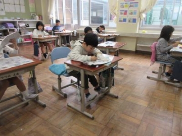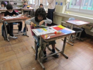 2年生が図画工作科の学習で、「まどのあるたてもの」を制作しています。自分がイメージした建物になるよう、下書きした窓の形を丁寧にカッターで切り進めていきました。だんだん窓が完成に近づくと、次は屋根の形や組み立てです。自分だけのオリジナルの建物ももうすぐ完成。どんな建物が出来上がるのか、楽しみですね。カッターの使い方もどんどん上手になってきました。