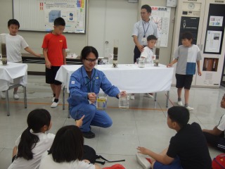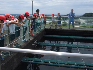 昨日まで雨が続いていましたが、今日はとてもいい天気になりました。4年生は歩いて、水沢浄水場に社会見学に行きました。見学では、川からとった水(原水)を、どうやってきれいな水道水にしているかを教えてもらいました。実際に使われている施設を見学させてもらったり、薬品を使って水をきれいにする実験を体験したりして、どの子も興味津々で学ぶことができました。毎日使っている水がどれだけたくさんの工夫と時間をかけて作られているのかがよく分かり、水の大切さを感じることができました。
