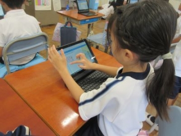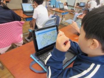 国語の時間に、いろいろなものの名前カードを、特徴に合わせてまとめ、見出しをつける活動を行っていました。「「チューリップ」「あさがお」は花かな」「「パンダ」「しまうま」は動物」など、カードを移動させながら、まとまりに見出しを書いていきました。中には、カードそのものを色分けしてまとまりがわかりやすく表現するなど、工夫を始めていました。言葉のなかま分けの活動を通して、具体と抽象の概念を自然と身に付けることができます。子どもたちは、個々に試行錯誤したり、友だちのまとめ方を見たりしながら、学びを深めていました。   |