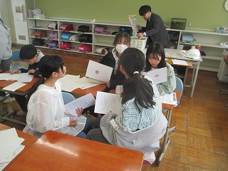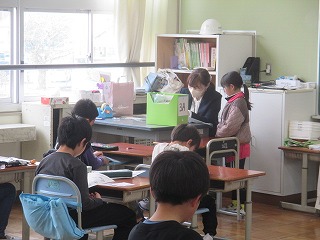 通知表を渡されている時間を使って、お世話になった先生に、手紙やメッセージを書いている子どもたちがいました。