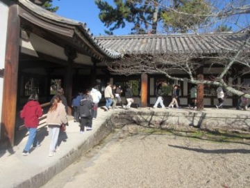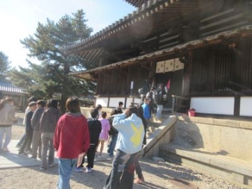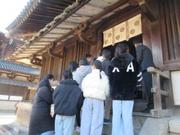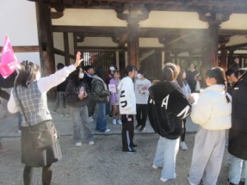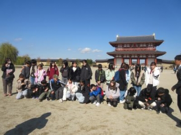 最初の目的地は、法隆寺です。目的地に近づき、塔の上にある相輪が見えてくると、子どもたちも「あれが五重塔かあ」と楽しみにしている様子が伝わってきました。法隆寺では、五重塔や金堂、廻廊、大宝蔵院などを見学し、各所でバスガイドさんからの説明をききながら、丁寧にメモを取る様子もありました。顔を見上げて眺める五重塔、実際に触れてみた廻廊の柱、玉虫厨子や聖徳太子の像、たくさんの仏像など、教科書で学んできたことを近くで見ることができました。     平城宮後では、710年に奈良に都が移された平城京の様子をVRシアターで見た後、昼食をとりました。出発が朝の早い時間だったこともあり、しっかり昼食をとっていました。      |
