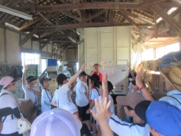 先日、脱穀作業をした籾もしっかりと乾燥しました。今日は、学習支援ボランティアの方にお世話になり、機械による籾すりを見せていただきました。5年生が植えたもち米は、籾がついた状態で14.3kgです。「籾すりをすると、何kgになるでしょう」と、最初は、予想を立てるところから授業は始まりました。選択肢は5kgから13kgで、一番多かったのは、10kgでした。機械が動き始めると、ベルトコンベヤーのように、玄米になっていく様子を順に見ることができました。「何kgぐらいになるのかな?」「こうやって玄米になっていくんだ」など、子どもたちも少しずつ姿が変わっていく様子をしっかりと見学できました。出来上がった玄米は…10.98kgでした。籾すりの後は、約3kg減りました。脱穀は昔ながらの足踏み式、今日は、機械を使っての籾すり、子どもたちもきっと、時代の流れを感じたことでしょう。     |