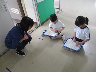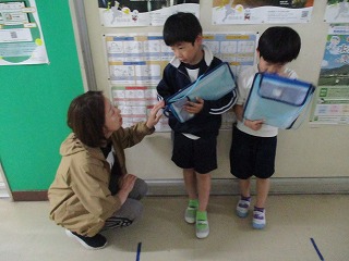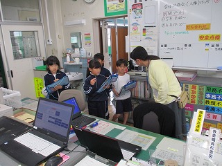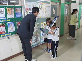 1限めに国語科の授業の一環で、2年生が学校で働く方々にインタビューを行いました。事前に授業の中で、インタビューの内容やインタビューする時のマナーなどを学習しました。「失礼します。」「お仕事のことでインタビューさせてください。」と学習してきた通り、丁寧な言葉で挨拶をした後、「どんな仕事をしていますか。」「仕事は難しいですか。」など、考えてきた質問をしました。聞き取ったことをしっかりメモをする姿は素晴らしかったです。       |